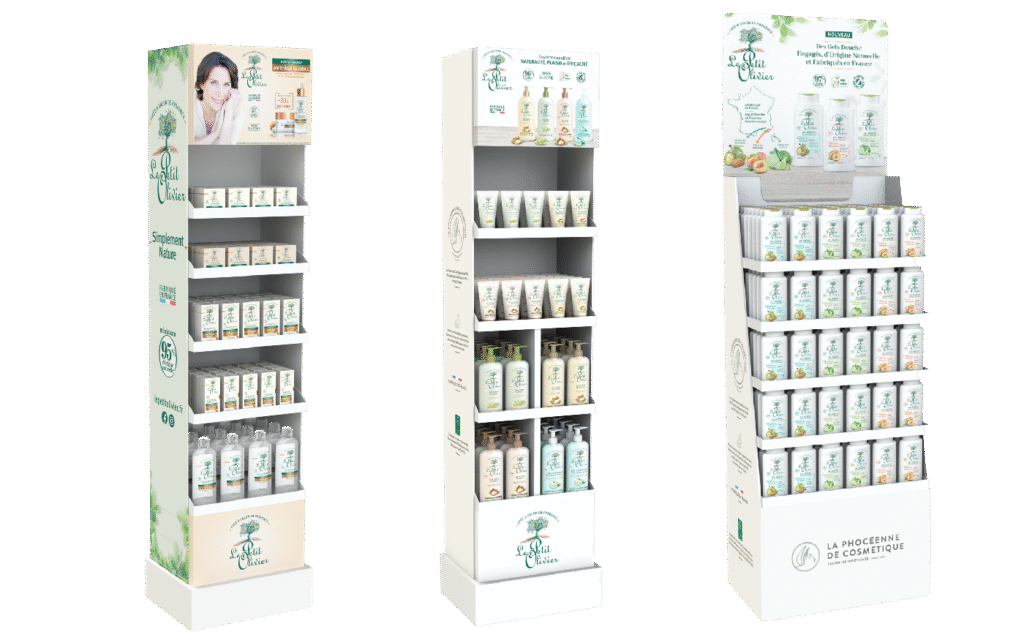 Cardboard Display created according to the product line, from concept to delivery. I helped improve and evolve the visuals according to our target audience and their expectations ( natural, simple products made in France). The displays for skincare had a different art direction than the other type of products.